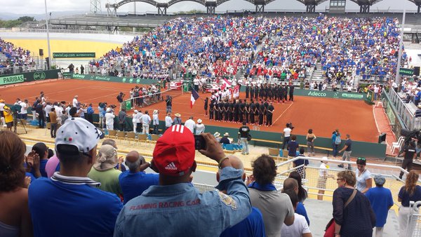 "Allez Gaël, allez Gaël ! " Les supporters des bleus ont encouragé jusqu'au bout le tennisman Français, Gaël Monfils qui jouait cet après-midi au stade Amédée-Detraux face au Canadien Frank Dancevic. Désormais, la France mène 1 - 0 face au Canada.